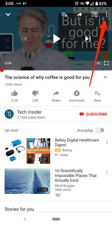 The mobile version hides some controls by default, but with a tap, you can reveal them. Here’s what to do when watching on your phone:
